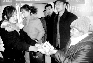昨日,在河南省慈善总会、周口市慈善总会联合举行的关爱肿瘤慈善助困药品发放仪式上,我市近300名肿瘤患者领到了价值23万余元的药品。图为工作人员在向困难患者发放药品。(记者 王映 实习生 薛懿轩 摄)