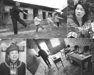 影像链接 (左上图)2009年2月16日,在广西融水苗族自治县泗柳屯教学点,师生在做课间操。