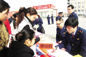 昨日,我市相关单位在五一广场设立咨询投诉台、法律法规咨询区等,现场受理消费者的咨询和投诉,宣传和讲解与人民群众生活密切相关的生活消费品的识别常识、鉴别方法,提高消费者的消费水平和自觉维权意识。
