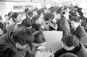 许多招聘单位都被“4050”应聘人员围得水泄不通。