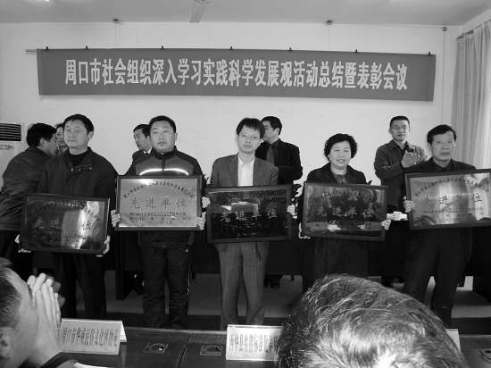 在3月23日召开的社会组织深入学习实践科学发展观活动总结暨表彰会议上,周口博爱妇科医院等8个社会组织被评为先进单位。 (记者 程鹏 摄)