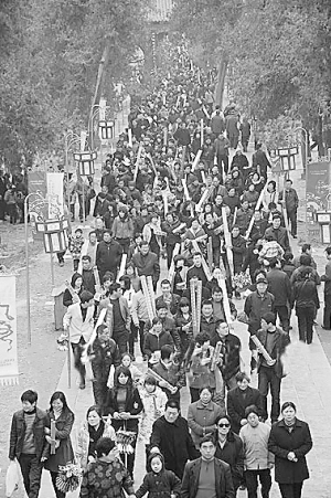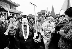 “赏百般技艺、听百台戏剧、玩百项游戏、品百种小吃、购百样物品”,是今年淮阳羲皇故都朝祖会上出现的多个亮点。走进朝祖会,人潮涌动,千年庙会俨然成了数以万计群众的“狂欢节”。