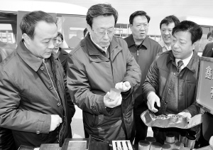 在市领导毛超峰、徐光、李明方、范明,市政府秘书长游保峰及县委书记杨挺俊、县长刘政等领导陪同下,郭庚茂先后深入到鹿邑县产业集聚区的亚华玻璃、志远实业、所望化妆、金日油业等公司,对我县产业集聚区发展和项目建设情况进行认真调研。