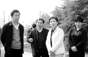 上图为王宇燕(右二)在乡镇督导林业生态市创建工作。邝越 摄