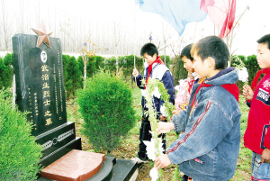 清明节前夕,商水县姚集乡园桥小学400余名师生到商水县烈士陵园把自己精心制作的花环,献给先烈。(魏红 摄)
