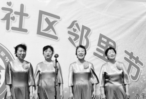 欢乐“邻里节” 4月8日,航运路社区的居民在表演小合唱。当日,济南全福街道办事处举行社区“邻里节”,为居民搭建相互帮助、相互了解的平台,构建和谐、和睦的社区文化。 新华社记者 朱峥 摄