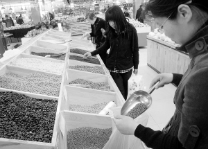 春季多风干燥,买绿豆熬粥“去火”的市民多了起来。由于近期绿豆价格上涨,市民普遍感到不解。据一超市经理介绍,绿豆价格上涨的主要原因是,去年下半年东北部分地区遭遇干旱,造成绿豆减产,今年的货源比较少,再者就是随着天气转暖,市民的需求量有所增加,使得价格上涨。(记者 王映 摄)