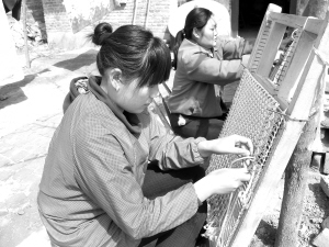 4月8日,商水县大武乡几名农村留守妇女在家门口加工汽车坐垫。大武乡以开展“幸福家庭”行动为抓手,采取统一技术指导、统一提供原料、统一上门收购的方式,扶持留守妇女在家发展珠绣加工和编织汽车坐垫,实现了发展农业生产和在家挣钱两不误。(吕耀光 冯志华 摄)