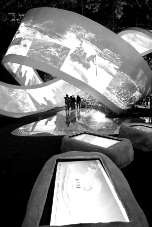 这是4月14日拍摄的世博会湖南馆。当日,上海世博会湖南馆竣工亮相。该馆以“都市桃花源”为主题,造型是由两个竹板拼接而成的巨大“魔比思环”,通过环体上方的64台投影仪,在两个曲面环体上投影出一幅幅流转不断的画面。充分展示出一个风光秀丽、历史文化底蕴深厚的湖南开放新形象。 新华社记者 凡军 摄