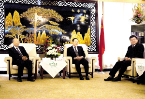 本报讯 (记者 李莉) 4月15日下午,市委书记毛超峰,市长徐光在周口饭店亲切会见了来周考察的台湾地区制鞋工业同业公会理事长林昭杰一行,就进一步加强合作进行了深入会谈。市委常委、副市长范明,市长助理宋伟及市商务局、周口海关等部门负责人参加会谈。