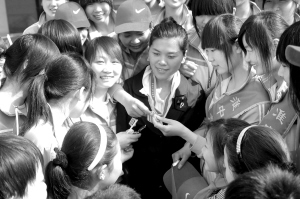 荣获“全国劳动模范”和“全国先进工作者”称号的我市7名同志从北京载誉归来,受到各级党委、政府及所在单位职工的热烈欢迎。4月30日上午,淮阳县隆重欢迎“最美乡村校长”——许湾乡希望小学校长李灵归来时,号召全县广大干群学习李灵扎根基层、默默奉献、艰苦创业的精神,为该县经济社会又好又快发展做贡献。图为淮阳县喜迎李灵载誉而归的场景。(记者 沈湛 摄)