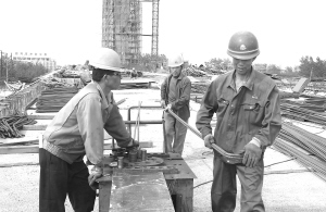 昨日,大庆路桥工地上一派忙碌的景象。“五一”小长假期间,大庆路桥工地、周口大道拓宽工地等处的工人们,为了周口人民的出行方便,加班加点施工,力争工程早日完工。(记者 孙安平 摄)