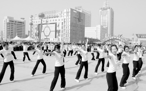 我市2010年全民健身活动月启动以来,群众积极参与。据了解,我市已连续14年举办全民健身活动,如今经常参加体育锻炼的群众有260多万人。记者 李寒 摄
