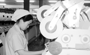 扶沟县强力推动招商引资,凸显产业集聚效应,采取多元化招商模式,做好优势对接、产业对接、产品对接工作,机械制造、棉纺加工等产业集聚园区,有效地带动了该县的经济发展 。图为棉纺工人在工作。(记者 孙安平 摄)