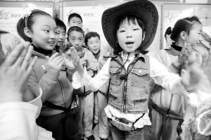 不出校门看“世博” 5月5日,在沈阳市南京街第九小学,一位装扮成“美国牛仔”的小讲解员为同学们介绍世博会美国馆。当日,沈阳市南京街第九小学举办“不出校门看世博”主题活动,师生们制作了40余块展板,图文并茂介绍世博会,并请学生担任讲解员介绍世博看点。 新华社发