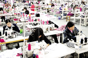 前天下午,上海景兴制衣有限公司西华分公司现代化车间内,500多名工人正忙碌地工作在各自的生产线上。据了解,该公司于2006年落户西华,所生产的全棉汗衫及针织时装全部出口日本。(记者 沈湛 摄)