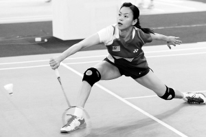5月7日,马来西亚队选手黄妙珠在赛前训练中。当日,参加2010年汤尤杯羽毛球赛的马来西亚队来到比赛场地进行赛前热身。2010年汤尤杯羽毛球赛将于5月9日至16日在马来西亚首都吉隆坡举行。