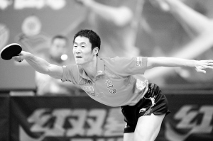 5月9日,王励勤在首场比赛中以3比2战胜马琳。