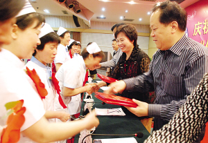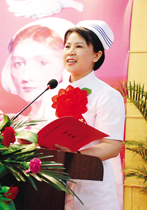 大家知道,在近两个世纪前的1854年至1856年的克里米亚战争中,英国一位出身贵族的小姐--弗洛伦·南丁格尔毅然决然放弃优越的富贵生活,奔赴炮火连天的克里米亚战场去救护伤员,在那极其恶劣艰苦的环境条件下,她亲自为伤员清洗伤口,努力改善环境卫生和伙食,增加伤员营养,代为伤员写家书,她用精心的护理和无私奉献创造了生命的奇迹,使伤员的死亡率由50%下降到2.2%,荣获英国皇家勋章,从而奠定了护理学科的基础,造就了护士这个神圣的职业。后来,人们把南丁格尔的生日作为全世界护士的共同节日。而每年护士节,都会有不同的主题,以使护理工作更能满足人们不同层次的健康需求,也使护士的职业价值取向更能与经济社会发展相适宜。今年5.12国际护士节的主题是“以人为本、细节服务、引领创新照护”,这为护理工作丰富了更深刻的内涵,也给每一位护士提出了更高的要求。全市广大护理工作者紧紧围绕主题,结合本地本单位实际,在各级卫生行政部门的统一指导下,由市护理学会具体组织实施,以不同形式走进社区给慢病病人以健康指导;走进福利院给老人和孩子以照护;走进农村留守儿童家庭作疾病防治知识的宣教普及;走进病房为住院患者提供细致入微的护理服务,赢得了社会各界的广泛好评和人民群众的高度赞誉,涌现出了一大批先进典型。今天,我们在这里隆重集会,欢聚一堂,共庆5·12国际护士节,就是通过表彰优秀护理管理工作者和优秀护士,彰显榜样的作用,进一步弘扬南丁格尔精神,营造全社会尊重护士、爱护护士的良好环境;也是结合卫生工作中心和重点,按照卫生部、卫生厅的统一安排和部署,在全市范围内迅速开启“优质护理服务示范工程”创建活动的帷幕,形成人人参与、科科争创、单位抢先的浓郁创建氛围!