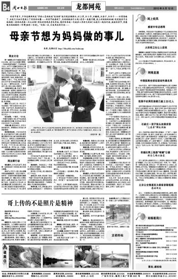 母亲节前夕,中华龙都网网友“寻找心灵的轨迹”发帖称“我们现在都很忙:忙上学,忙工作,忙赚钱,忙房子,忙车子……忙得忽略了,白发已不知不觉爬上了母亲的双鬓……母亲节就要到了,为妈妈做些什么呢?是买一束康乃馨,送上对妈妈的祝福?还是想亲手为妈妈烧一道菜或是做一次大扫除?抑或是您现在身处异地,想对母亲说一句放在心里好久的话?让我们一起来行动,说说母亲节,你最想为妈妈做的一件事(说的一句话)。”此帖一出,引发网友的讨论——
