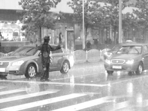 追忆似水年华:那雨下得真大,交警同志很是辛苦,希望你们能够工作顺利、天天快乐!