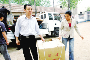 这天一大早,市教育局局长张继林就亲自组织人员装运价值2万余元体育器材和书籍去李灵希望小学看望师生。听说张局长来看望大家,李灵早早地在校门口迎接,见到张局长一行的到来就十分感激地说:“十分感谢领导对我们学校的关心和支持”。在不大的校园里,张局长告诉李灵:“你的事迹很感人,是我们教育战线的楷模,一定要加强学校管理,办出水平,办出特色。(丁玺)