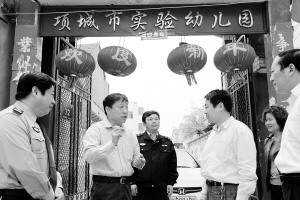 5月7日,项城市副市长、公安局局长周运杰到幼儿园督导校园安全防范工作。据了解,从5月1日起,项城市开展了校园安全防范工作专项行动。魏康 摄