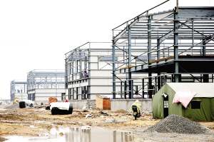 昨日,西华县产业集聚区内标准化厂房建设如火如荼。据悉,该集聚区以食品加工、纺织业为主导产业,包括肉制品加工、豆制品加工及棉纱纺织加工等。(记者 沈湛 摄)