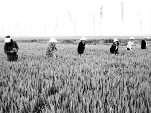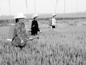 当前,各村妇女互助组已经成为小麦后期管理的主力军。左图为她们正在对麦田进行病虫害防治,右图为她们正在清除麦田里的杂草并精选良种。