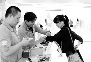 近日,完全定位女性消费的商场——北京时尚新世界女子百货正式营业。该商场的导购、收银员等一线营业员均为男性,仅在内衣区试衣间设有女性顾问为顾客服务。新华社发(罗伟 摄)