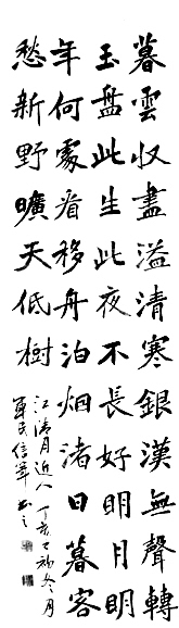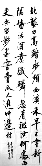 何心昌,一九四二年生于河南省郸城县。书法作品多次在县、市、省、国家举办的展赛活动中获奖;作品入编、刻碑于《中国书法艺术博览》、《中国书法家作品选集》、《江西白鹿大道碑林》等。现为河南省书法家协会会员、河南省诗词学会会员、郸城县书法家协会副主席。