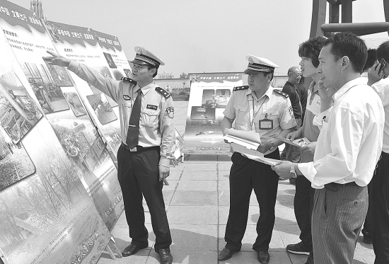 为了遏制道路交通事故的发生,市公安局把交通事故和交通法规以图片和漫画的形式制成板面,不定期在市区和乡镇集市展出,并给广大司机和路边居住的群众讲解安全出行注意事项。图为民警在给市民讲解交通安全常识。(记者 孙安平摄)