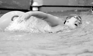 5月23日,广东队选手张雅恩在比赛中。当日,在安徽合肥进行的第四届全国体育大会公开水域成人女子3000米团体游泳比赛中,广东队获得一等奖。