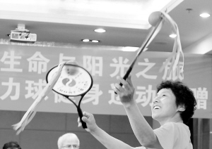 5月21日,一位残疾人在仪式上表演太极柔力球。当日,以“生命·阳光之旅”为主题的推广残疾人太极柔力球健身运动捐赠仪式在上海举行。