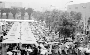 5月22日,游客在雨中游览亚洲馆区。当日,虽然上海下起了雨,但仍挡不住游客“逛”世博园的兴致。根据世博官网的统计,截至当晚18时30分,票检入园的游客达到35.65万人,创下5月1日开园以来最高纪录。此前纪录是5月15日的33.53万人。 新华社记者 徐昱 摄