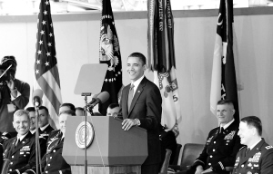 奥巴马出席西点军校毕业典礼 5月22日,在美国纽约州北部哈德逊河西岸西点镇的西点军校,美国总统奥巴马(中)出席2010年度毕业典礼。 新华社记者 谷欣容 摄