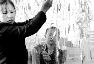 昨日清晨,一对渔民母子在摘取粘网的小鱼。近年来,随着沙颍河水质改善,河中的鱼类明显增多。