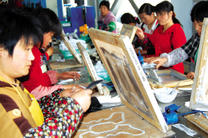 扶沟县加快推进产业集聚区建设,实现空间布局上的结构优化,提高产业的集中度和竞争力。图为入驻集聚区的宝昌企业员工在赶制产品。(纪俊辉 摄)