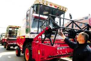 鹿邑县105万亩小麦收割在即,该县农机部门组织了2000台收割机整装待发,并成立了100个跨区作业联络点,全力备战“三夏”。图为该县涡北镇傅桥行政村农机手正在等待任务。(胡洪涛 胡海云 摄)
