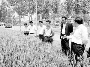 近日,县委书记王云彪,县委常委、办公室主任杨运河在县农业局局长童玉体等陪同下深入到洪山乡麦田实地了解小麦生长情况。目前,全县94万亩小麦长势喜人,丰收在望,是近几年来较好的一年。据农业部门调查,小麦亩成穗44.3万穗,比2009年每亩增加1.5万穗,穗粒数35.6粒,比2009年增加0.8粒,如果近期天气不出现干热风或阴雨等灾害,向着有利于小麦灌浆的方向发展,小麦单产仍然能够超千斤。(程书伟 摄)