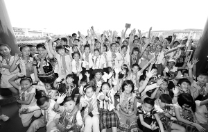 5月31日,参加中国少年先锋队第六次全国代表大会的85名小代表来到天安门城楼参观。中国少年先锋队将于6月1日至2日在北京举行第六次全国代表大会。来自全国各地56个民族的806名少先队员、辅导员和少先队工作者代表将出席大会。 新华社记者 杨光 摄