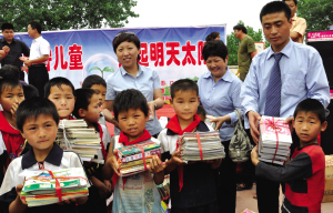 6月1日,在淮阳留守儿童学校,社会各界纷纷向这里的孩子们赠送节日礼物,并表达祝福。周口万顺达百货的员工们捐赠了图书等学习和生活用品,让孩子们感受到来自社会大家庭的温暖。