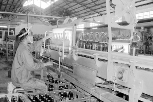近日,金星啤酒厂一名质检员在认真检查每瓶啤酒的质量。该厂是郸城重点企业,为全县提供了上千个就业岗位。入夏以来,啤酒销量大增,该厂严把产品质量关,不让一瓶不合格啤酒流向市场。(记者 卢好亮 摄)