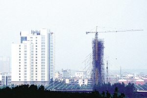 远眺大庆路桥,雏形初现。建成通车后,该桥将成为市区一道亮丽的风景线。(记者 沈湛 摄)