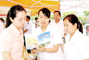 为宣传普及社会科学知识、提高公众科学文化素质、繁荣发展哲学社会科学事业,昨日,我市开展的“社科知识普及年”活动正式启动。图为一位市民向专业人员询问心理卫生知识。(记者 李寒 摄)