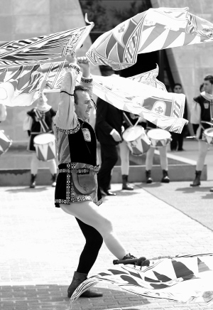 意大利举行国家馆日活动 6月2日,意大利马尔凯大区的演员在意大利馆外进行舞旗表演。当日,上海世博会举行意大利国家馆日活动。 新华社记者 凡军 摄