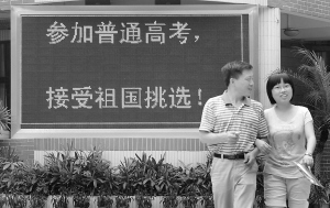 图①:考前踩点 备战高考 6月6日,一位考生和家长在广州市第七中学考场踩点。2010年全国高考将于7日举行,6日,广州市的考生们提前熟悉考试环境和教室位置。