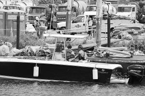 6月5日,在美国佛罗里达州彭萨科拉一处港口,油污清理工人准备铺设阻油设施。英国石油公司的深水地平线钻井平台泄漏的原油油污近日出现在佛罗里达州西部海域,当地旅游和生态环境面临威胁。新华社发