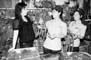 端午未到,香包先俏。端午节临近,从6月1日开始,市工商局以集贸市场、批发市场、大型商场、超市为重点,开展端午节市场整治行动,加大端午节食品、用品监管力度,确保消费者过一个祥和、欢乐的节日。图为荷花工商分局执法人员在市场内一经营店检查香包质量。(记者 王映 摄)
