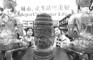 “我们十分珍惜这次参与世博会的机会,这对我们以后的学习和就业都会是很好的实践。世博会集纳了世界文化的精华,不仅让我们大开眼界,也使我们对自己的职业有了更深的思考。”在柬埔寨馆内,胡文艳和黄双一边细细地观赏和探寻,一边用相机拍摄她们喜欢的场景,“我们将来要成为文化推介的使者,让更多的人了解中国的历史、现在和未来。” 新华社记者 徐家军 摄